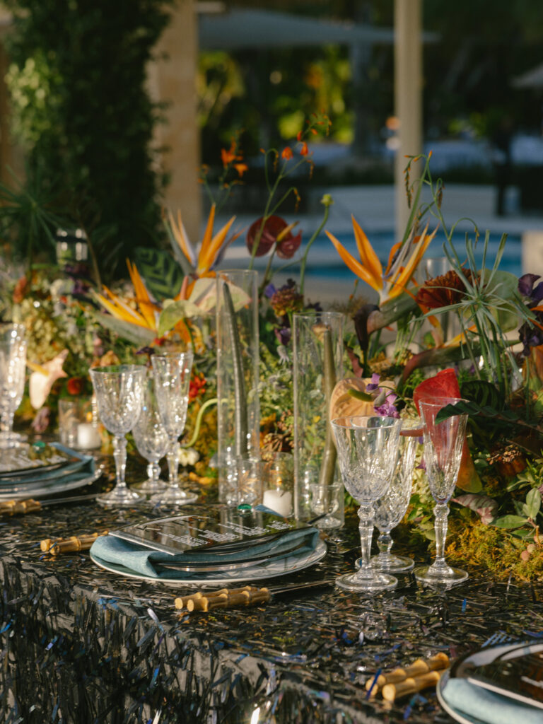 Some weddings allow us to dream big, and Allie & Juan’s was exactly that. Their vision blended modern city vibes with lush tropical elements, creating a wedding full of personality, texture, and contrast.