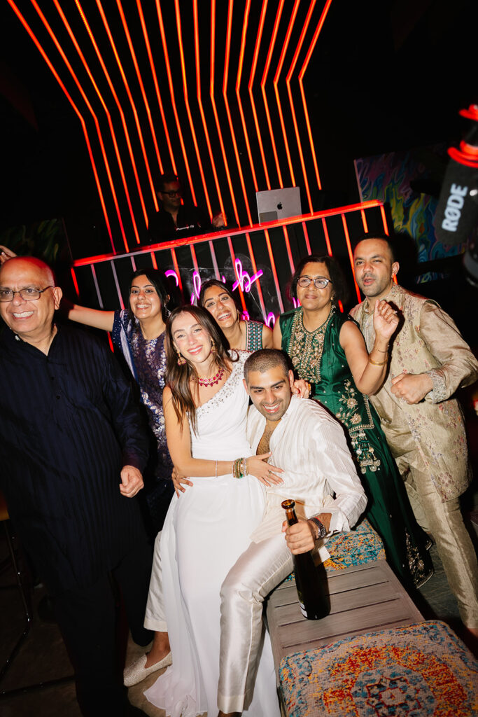 The design embraced bold colors, texture, and warmth while allowing the natural setting to shine. Florals by Garden Roses added richness to the tables and bar areas. Custom details throughout the evening reflected the blend of Jewish and Indian traditions in a way that felt joyful and intentional.