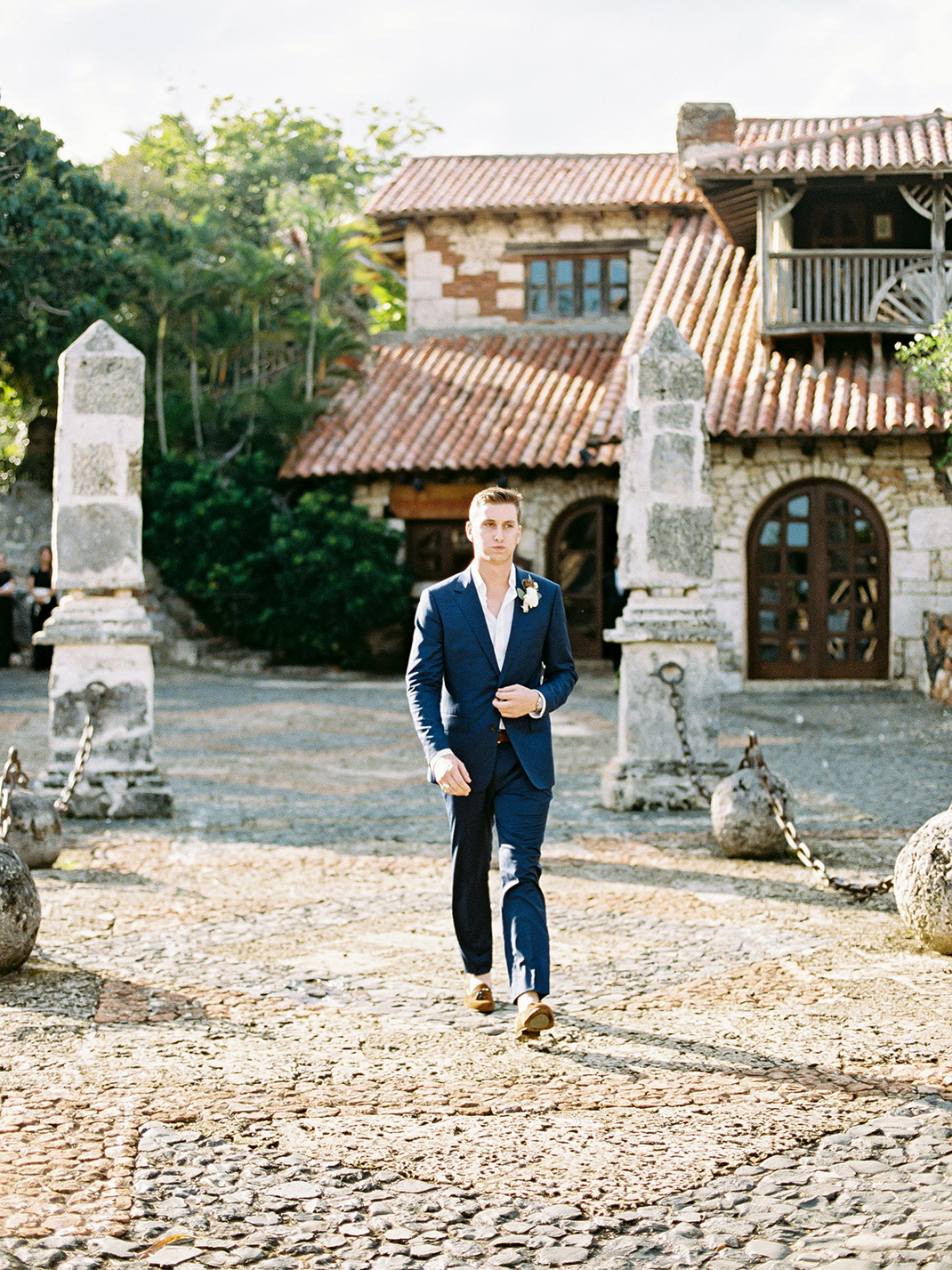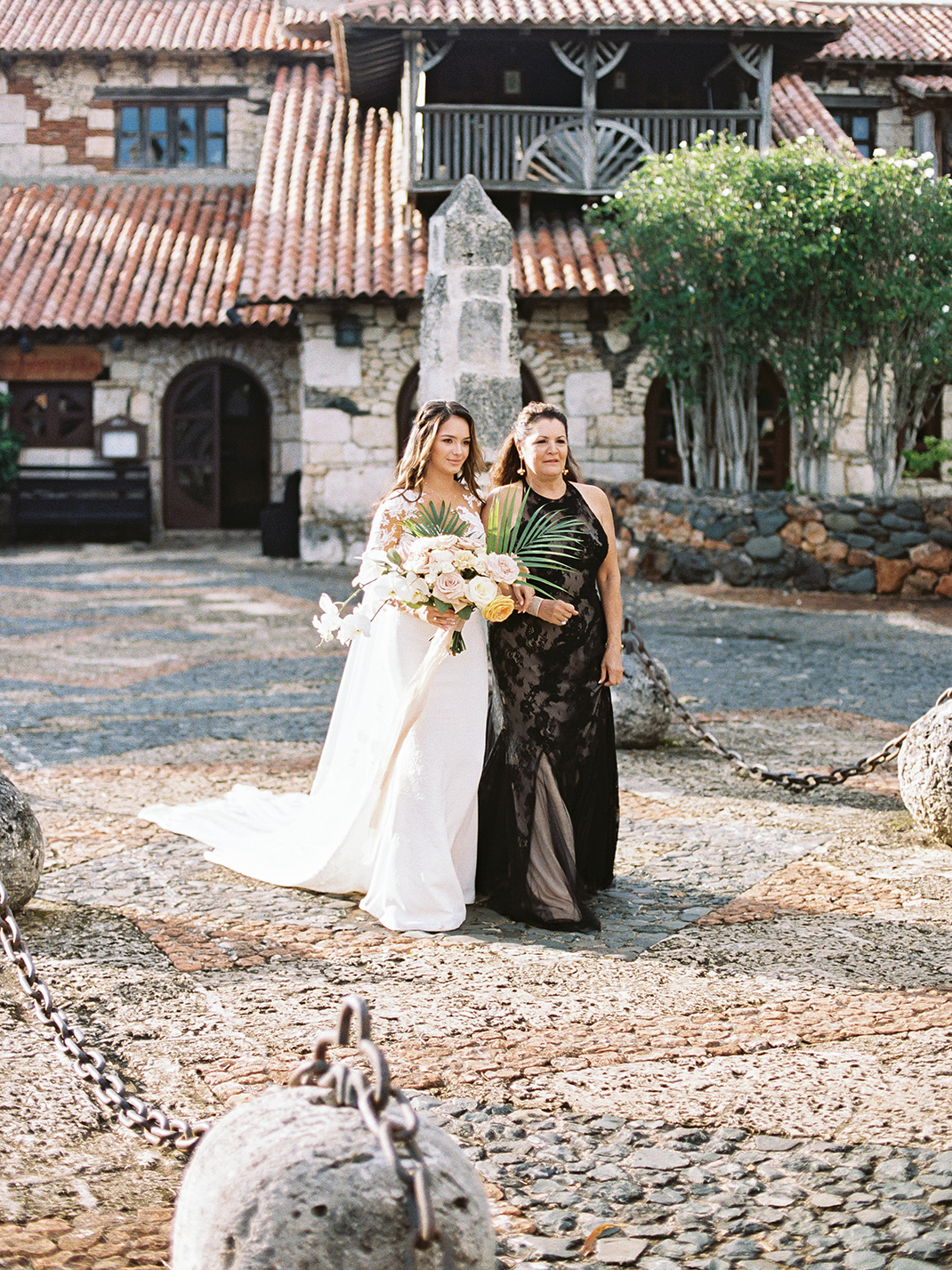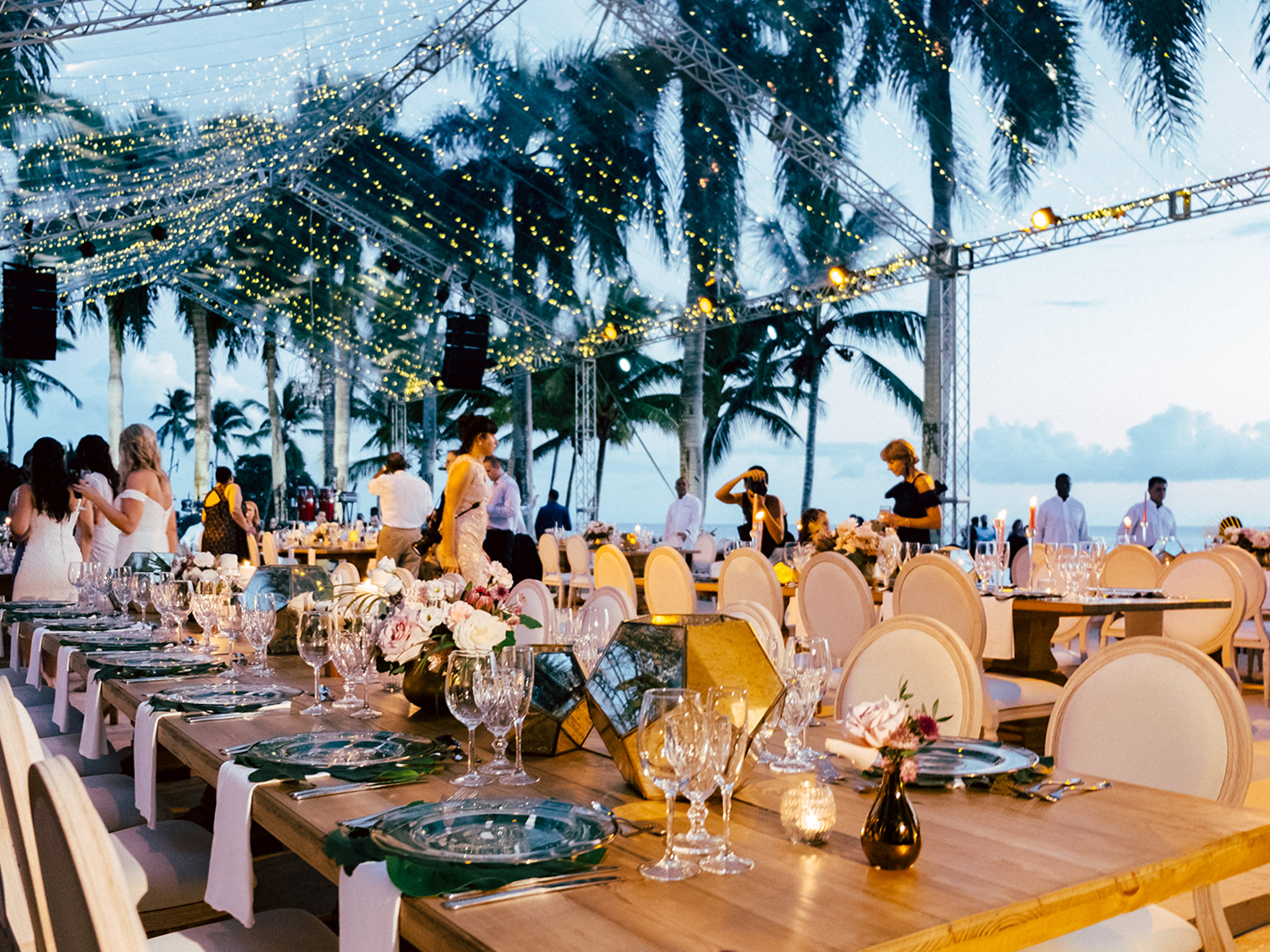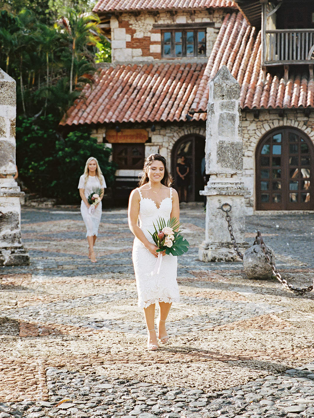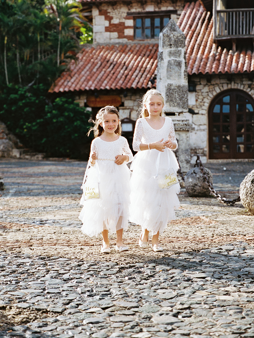 Natalie and Parker got to us as a referral of our uber talented friend (and almost CDWE team member), Asia Pimentel. Once we connected, from the first call I knew we were going to have lots of fun planning and designing their wedding. They were getting married at one of our favorite venues all around, Casa de Campo, in the Dominican Republic. Having secured an amazing photographer and venue, our heads immediately started spinning with ideas for what was going to be a fabulous set of events! Fast forward to their wedding weekend, it all kicked off with a marvelous Rehearsal Dinner under the stars and right by the ocean at private property Villa Alegre hosted by the lovely parents of the groom (future blogpost to come, highlighting this event). On the wedding day, we had both parties arrive at Altos de Chavón for the First Look and pre-ceremony portraits, but a strong and sudden rain ensued, putting a hard pause in those plans (reality of weddings in tropical settings). Once it calmed down, pictures resumed as our team quickly proceeded to dry up all the ceremony chairs, so we could greet the guests and start ceremony promptly. The sun came out and gave them the most spectacular day from then onwards. Their ceremony with the St. Etanislaus de Cracovia Church on one side and the Chavón river on the other, in the middle of the mediterranean-style village, was simply perfection! After Ceremony was concluded, all guests were shuttled to another private villa, where Cocktail Hour and Reception occurred. Everyone was greeted with fresh coconut water (right from the fruit) and a plethora of delicious appetizers. With the photos having been paused pre-ceremony, many were completed during Cocktail Hour, which complicated a bit the possibility of having more decor images and wide photos of the space, which we really wanted to be able to show you all. But trust us when we say that the view of that reception space with the gorgeous grass and the ocean, was literally what tropical dreams are made of. High clear tent ceilings, the feast, the live band, the Hora Loca entertainers, the donut wall, the unexpected cold fireworks…. so many elements that made up for this glorious day. We thank our couple, and their families, for having let us be a part of their Casa de Campo celebrations. And thanks to all our amazing partners, who joined us to make their day be perfect (see list at the end of post).