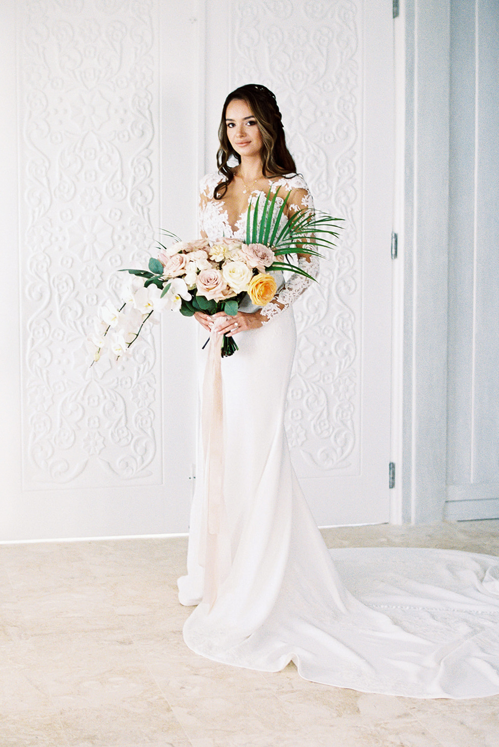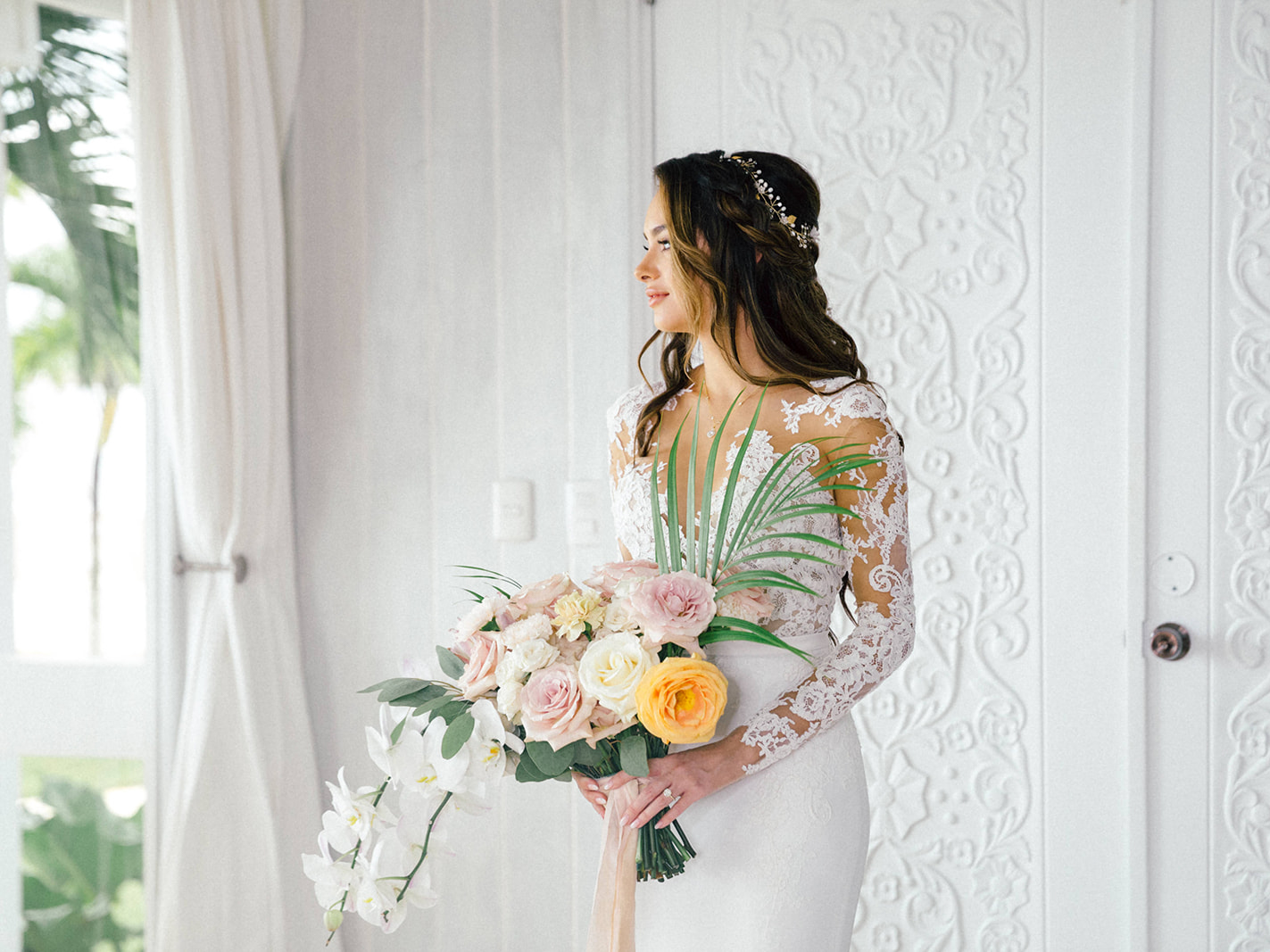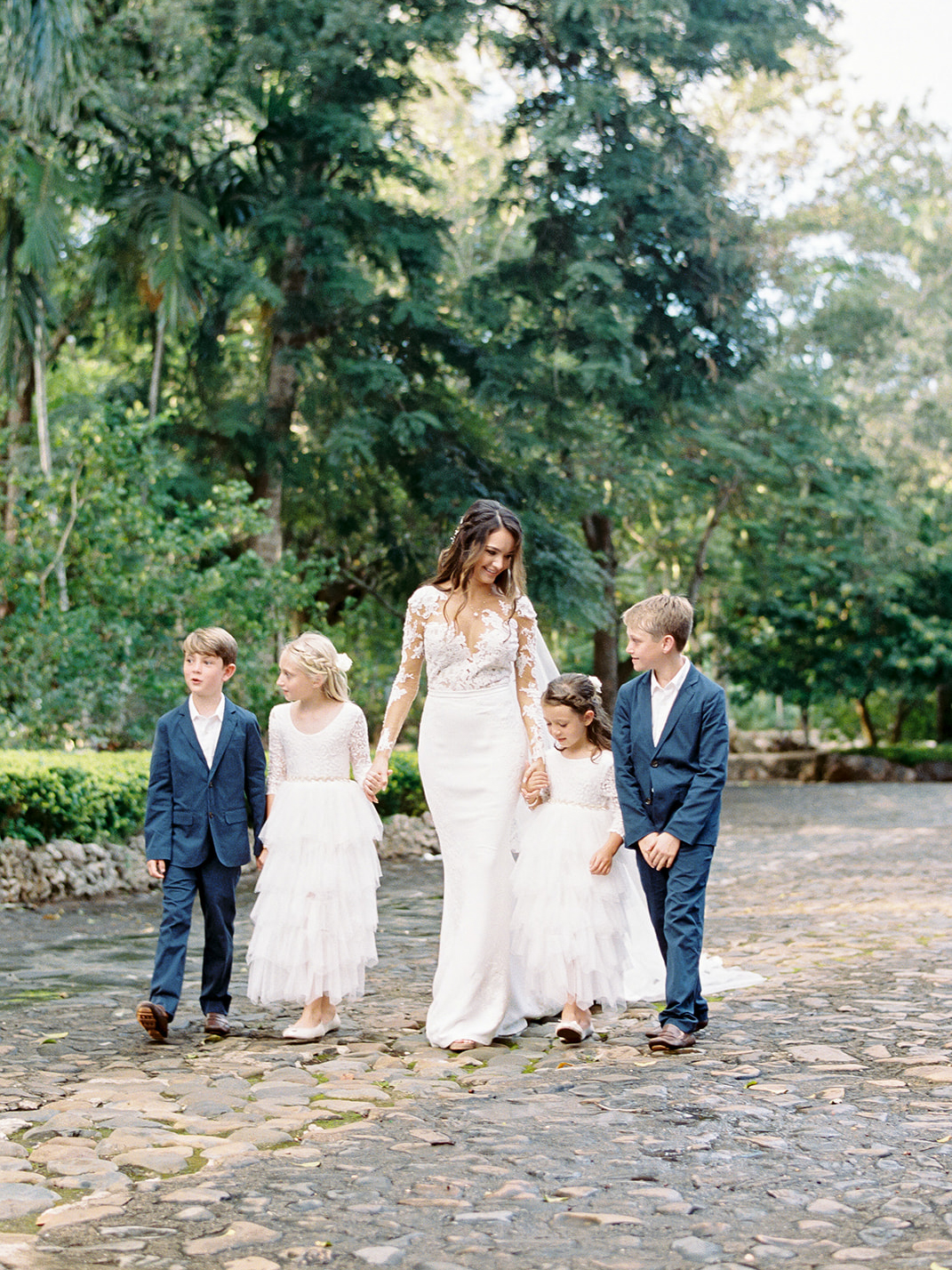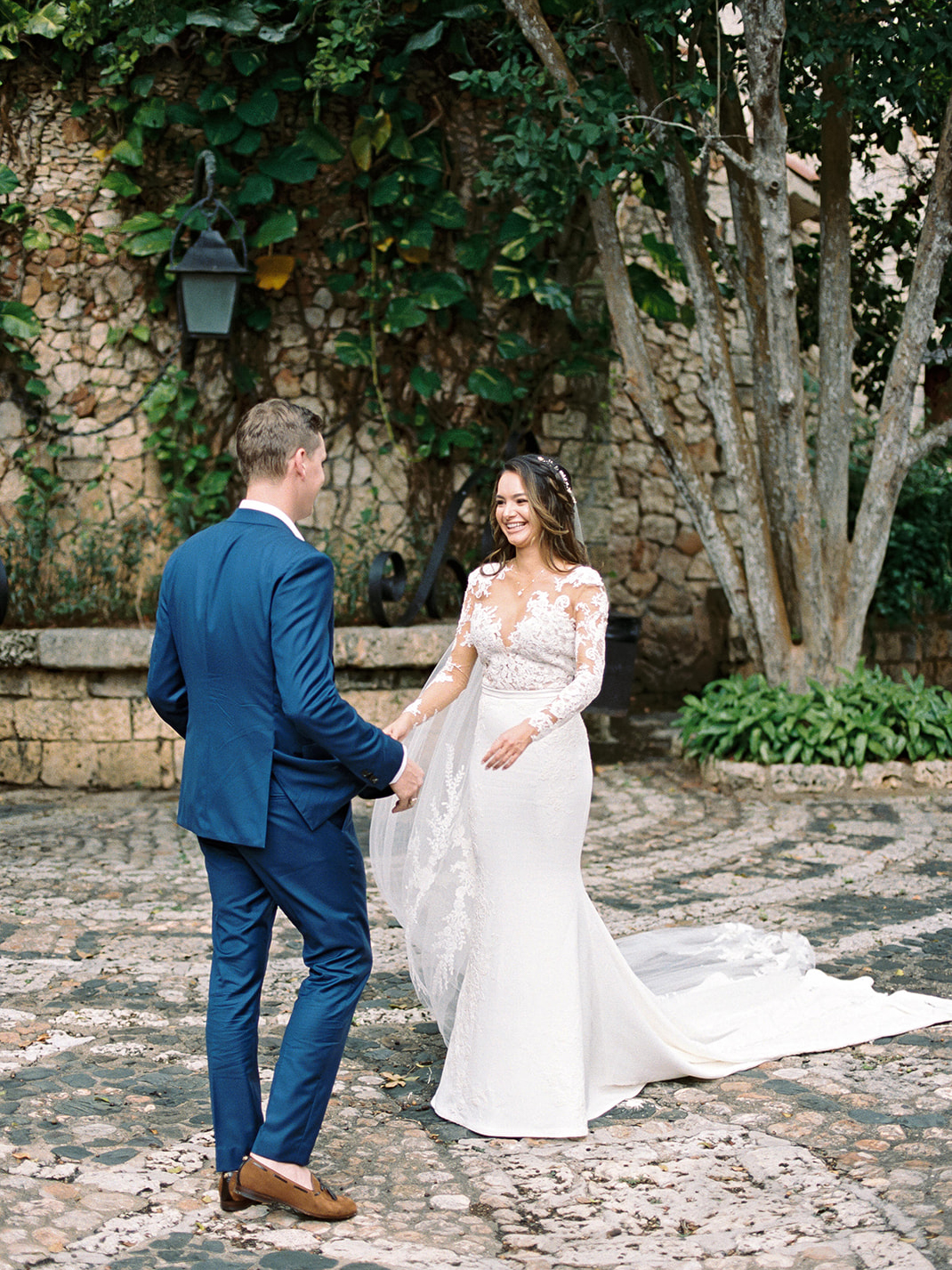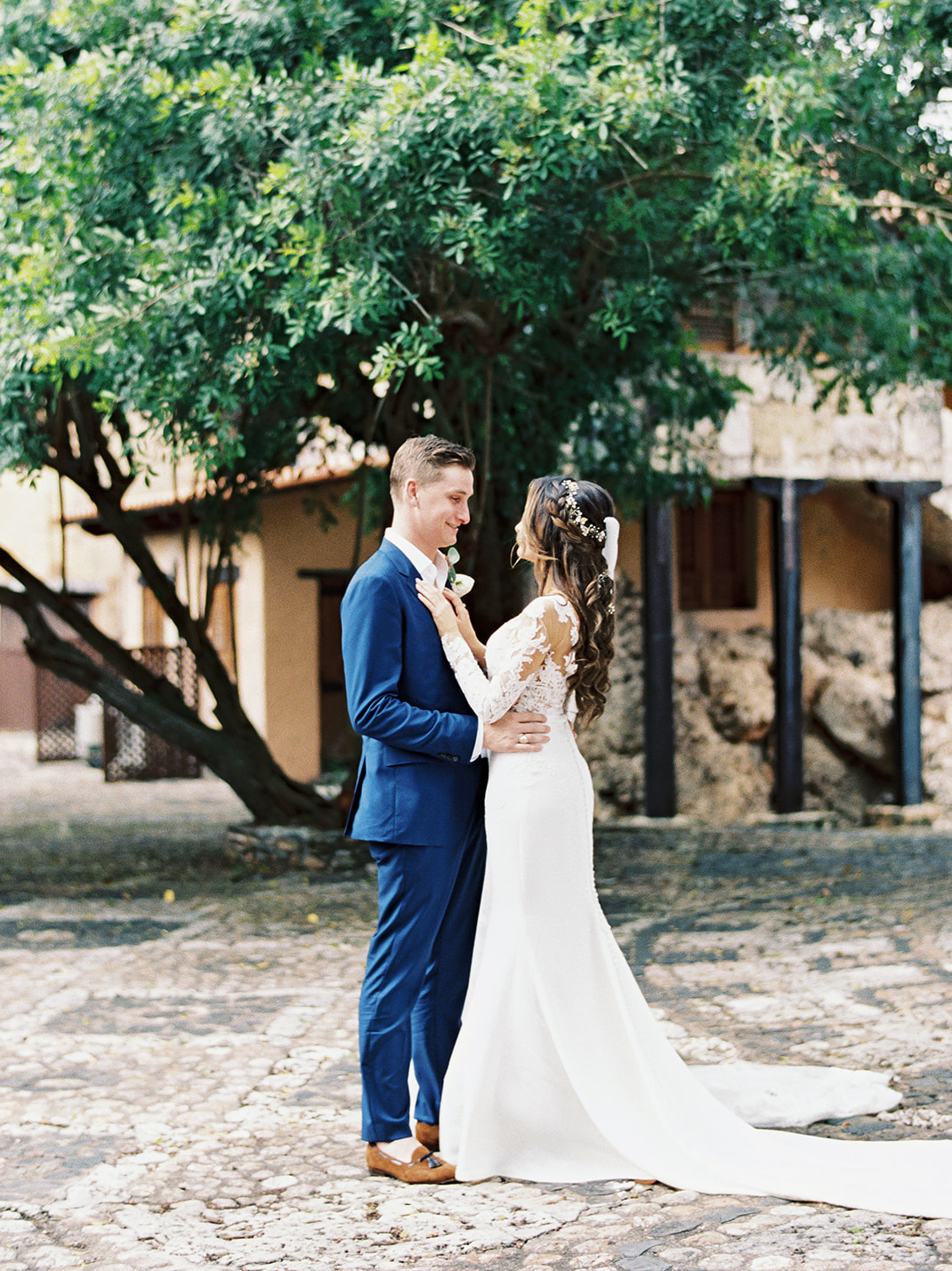 Natalie and Parker got to us as a referral of our uber talented friend (and almost CDWE team member), Asia Pimentel. Once we connected, from the first call I knew we were going to have lots of fun planning and designing their wedding. They were getting married at one of our favorite venues all around, Casa de Campo, in the Dominican Republic. Having secured an amazing photographer and venue, our heads immediately started spinning with ideas for what was going to be a fabulous set of events! Fast forward to their wedding weekend, it all kicked off with a marvelous Rehearsal Dinner under the stars and right by the ocean at private property Villa Alegre hosted by the lovely parents of the groom (future blogpost to come, highlighting this event). On the wedding day, we had both parties arrive at Altos de Chavón for the First Look and pre-ceremony portraits, but a strong and sudden rain ensued, putting a hard pause in those plans (reality of weddings in tropical settings). Once it calmed down, pictures resumed as our team quickly proceeded to dry up all the ceremony chairs, so we could greet the guests and start ceremony promptly. The sun came out and gave them the most spectacular day from then onwards. Their ceremony with the St. Etanislaus de Cracovia Church on one side and the Chavón river on the other, in the middle of the mediterranean-style village, was simply perfection! After Ceremony was concluded, all guests were shuttled to another private villa, where Cocktail Hour and Reception occurred. Everyone was greeted with fresh coconut water (right from the fruit) and a plethora of delicious appetizers. With the photos having been paused pre-ceremony, many were completed during Cocktail Hour, which complicated a bit the possibility of having more decor images and wide photos of the space, which we really wanted to be able to show you all. But trust us when we say that the view of that reception space with the gorgeous grass and the ocean, was literally what tropical dreams are made of. High clear tent ceilings, the feast, the live band, the Hora Loca entertainers, the donut wall, the unexpected cold fireworks…. so many elements that made up for this glorious day. We thank our couple, and their families, for having let us be a part of their Casa de Campo celebrations. And thanks to all our amazing partners, who joined us to make their day be perfect (see list at the end of post).